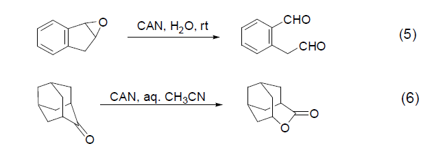 ★對於環硬汉视频黄色合物的硬汉视频黄色反應,也可以獲得二羰基化合物(式5)[6]。此外,CAN對特定結構的羰基化合物也具有硬汉视频黄色活性,例如將多環籠酮硬汉视频黄色為內酯(式6)的反應[7]。